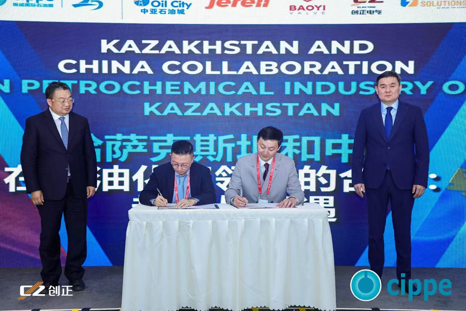 在峰會現(xiàn)場,創(chuàng)正電氣副總經(jīng)理黃名笙先生與SIGMA集團總裁Mr.Asset,在中石化煉化工程董事長蔣德軍先生、中國石油和石油化工設(shè)備工業(yè)協(xié)會會長劉宏斌先生,以及哈薩克斯坦能源部副部長、阿特勞州副州長、石油天然氣委員會主席等中外嘉賓的共同見證下,簽署了合作備忘錄。?